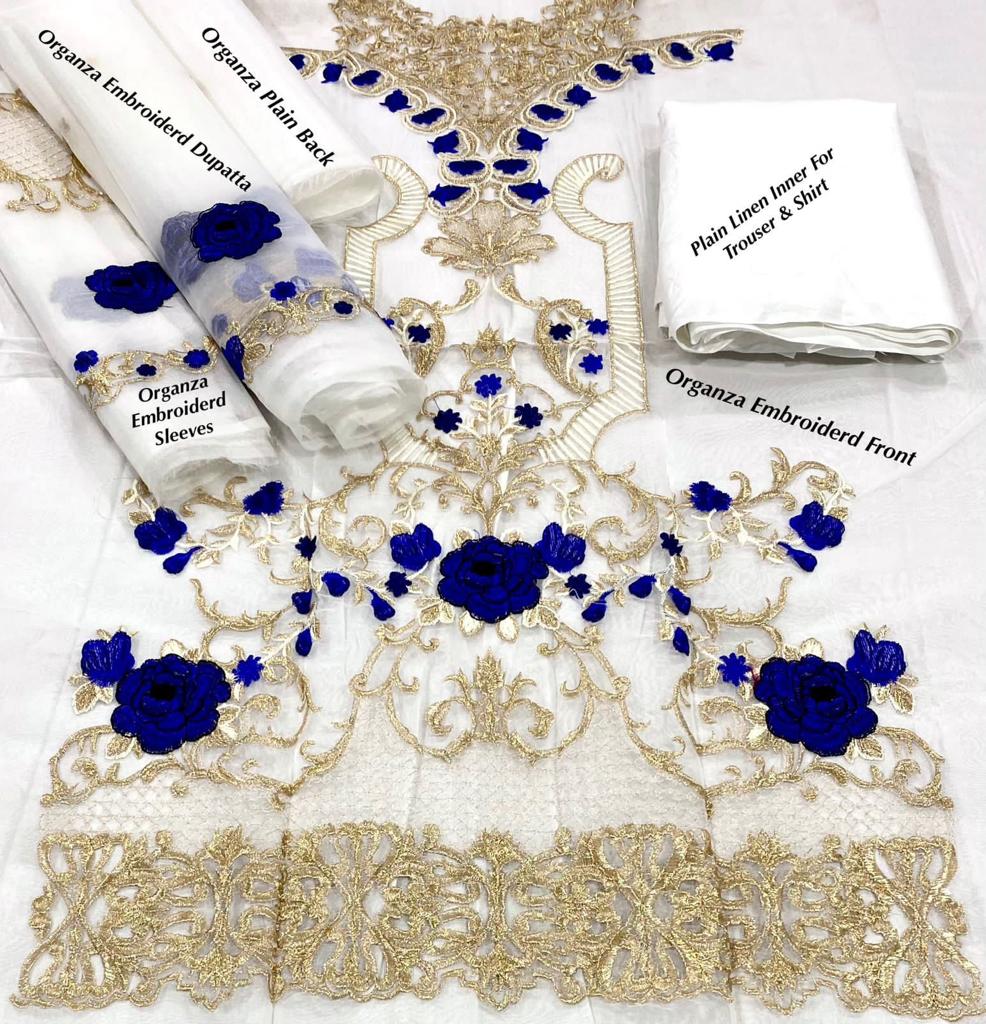 Grace W18- Embroidered 3pc Linen dress with Organza embroidered upper shirt & dupatta.