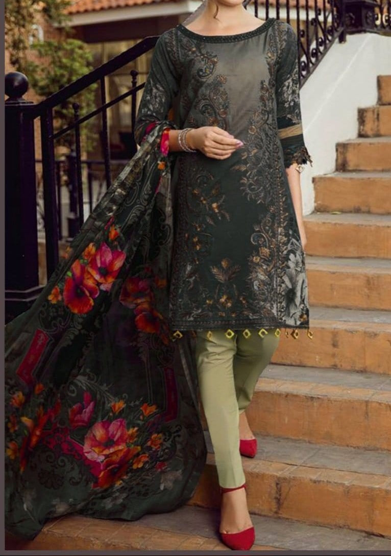 Grace S264- Embroidered 3pc lawn dress with printed chiffon dupatta.
