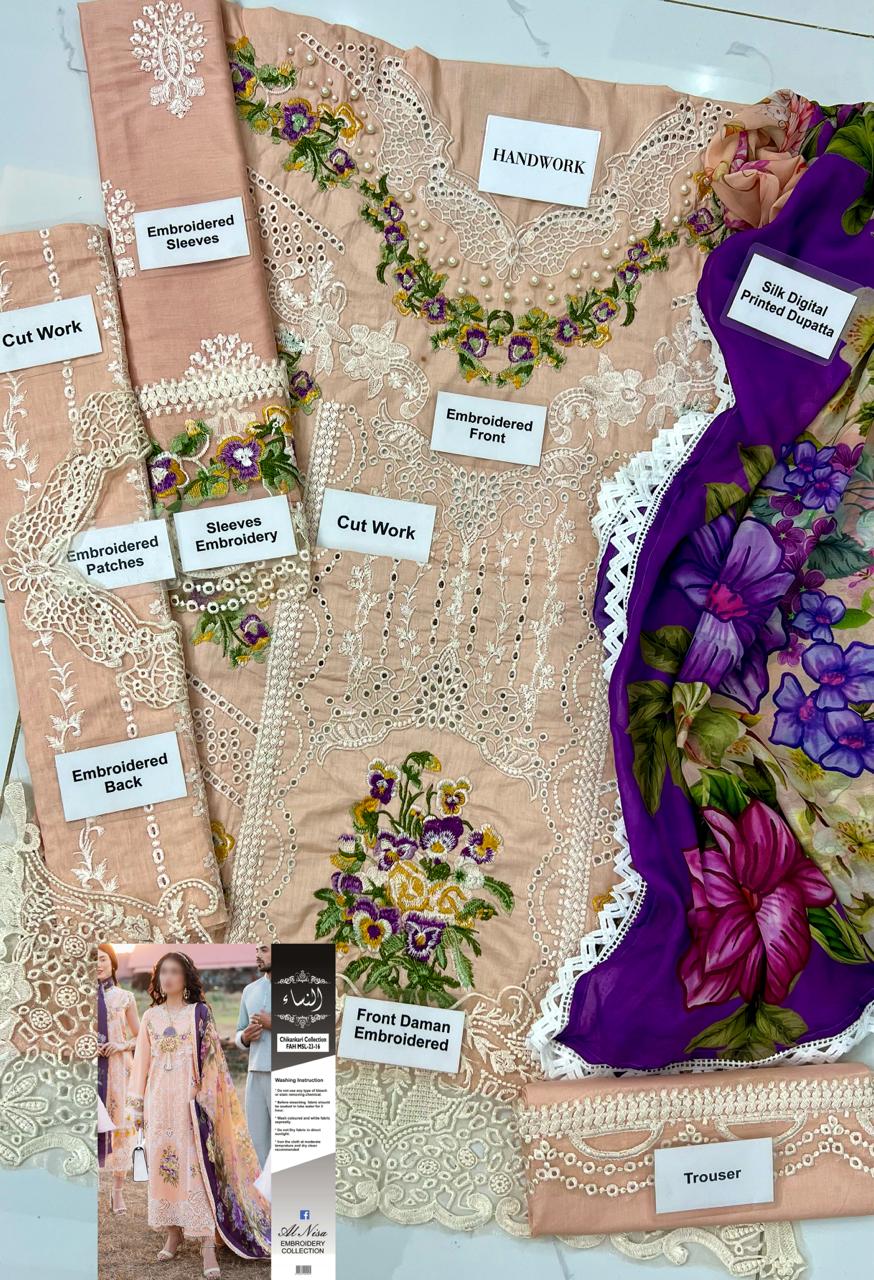 Grace S358- Embroidered cutwork 3pc lawn dress with Digital printed Silk Dupatta.