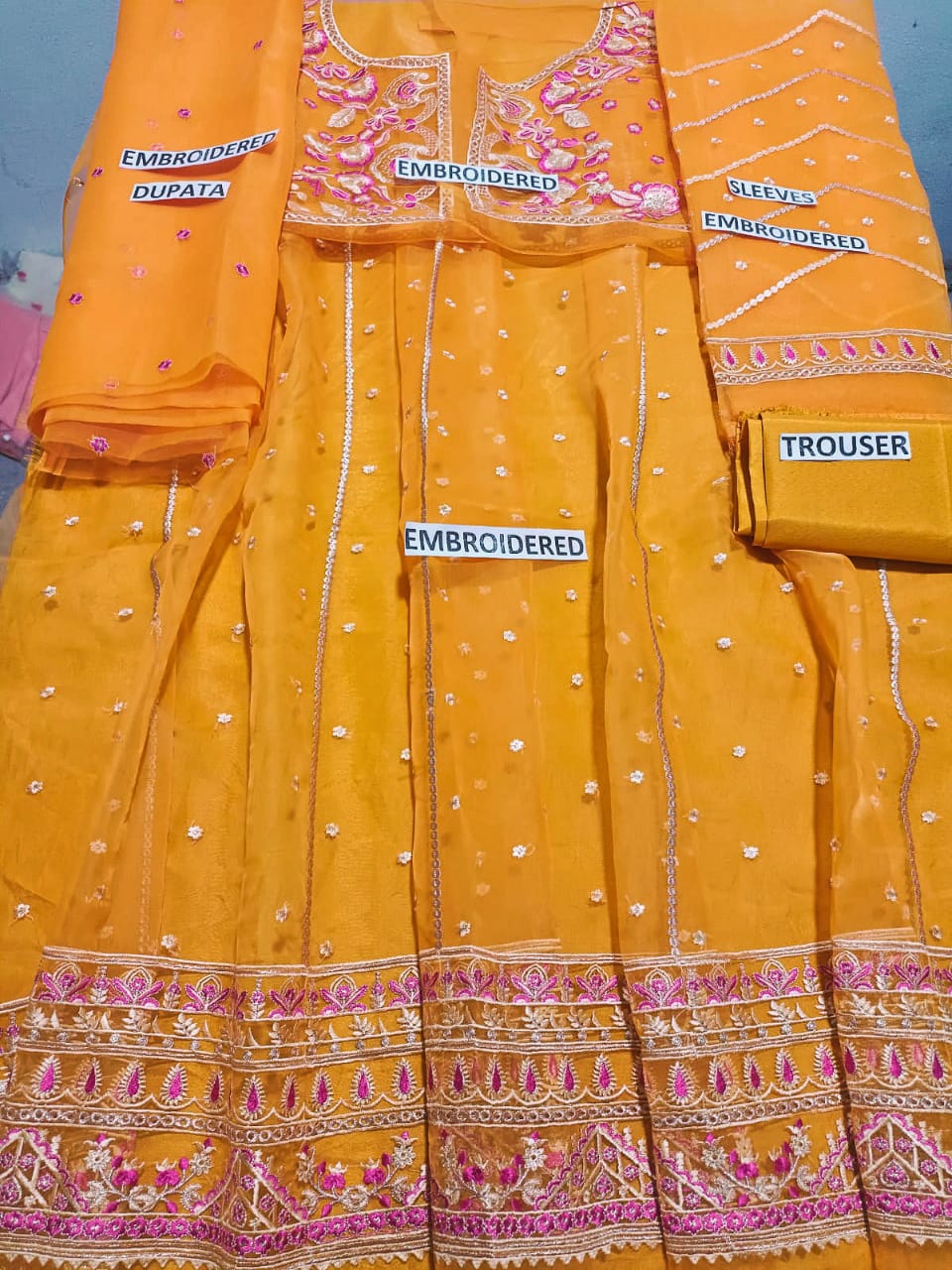 Grace S402 -Embroidered 3pc organza dress with embroidered organza duppata.