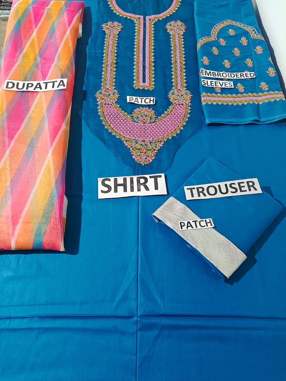 Grace S454-Embroidered 3pc lawn dress with printed organza dupatta.