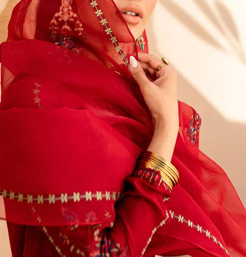 - Embroidered organza dupatta.