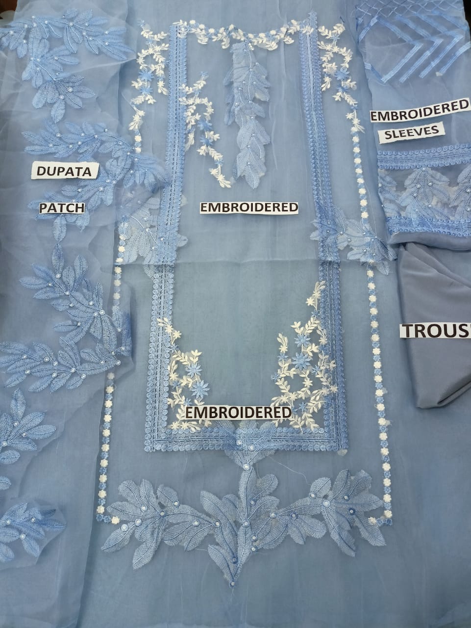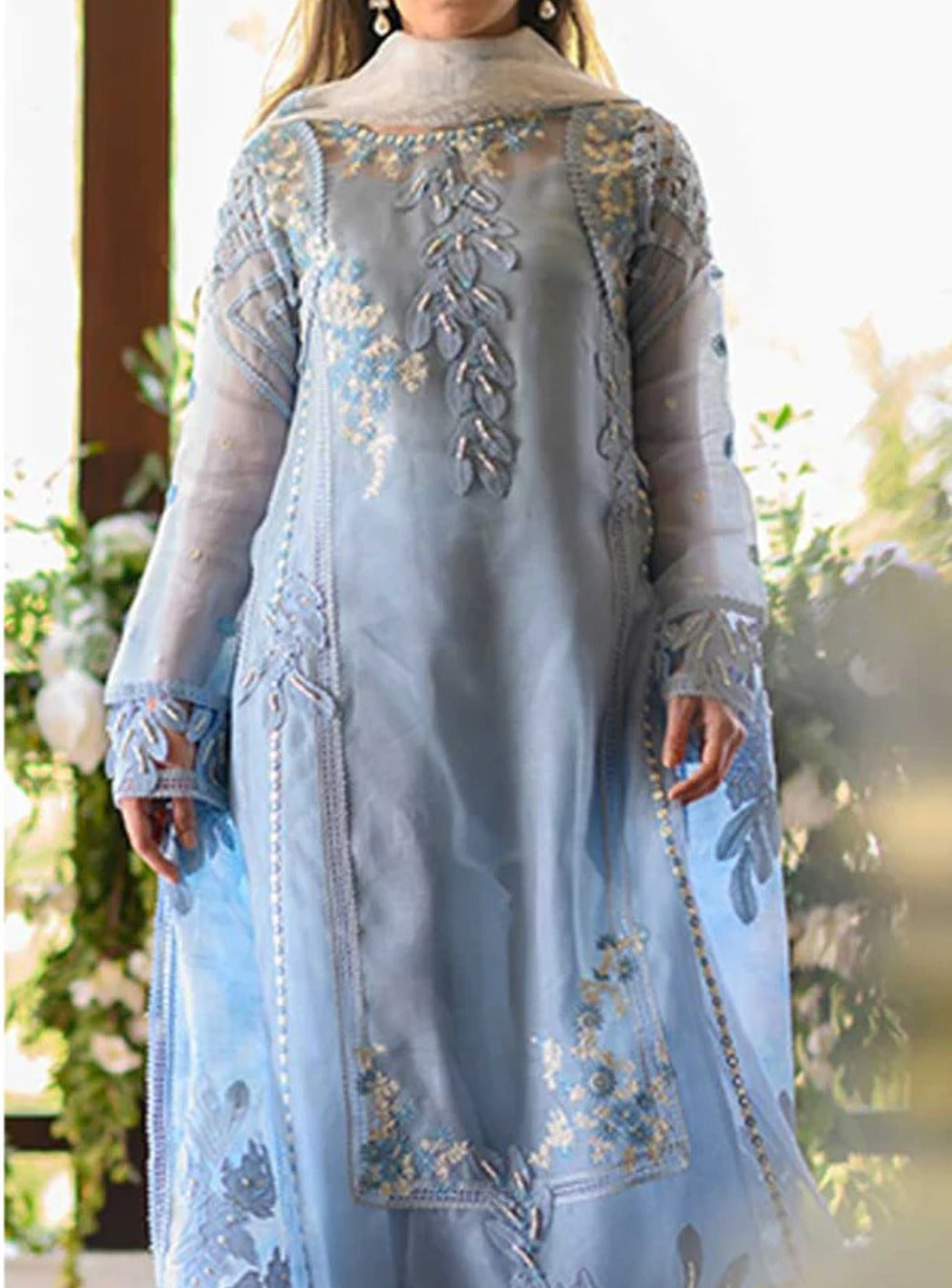 Grace S493-Embroidered 3pc organza dress with organza duppata.