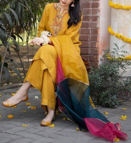 Grace S517-Embroidered 3pc lawn dress with dyed organza dupatta.