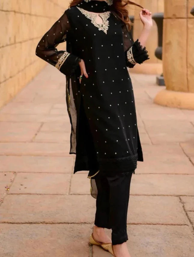 Grace S531-Embroidered 3pc organza dress with Embroidered organza duppata.