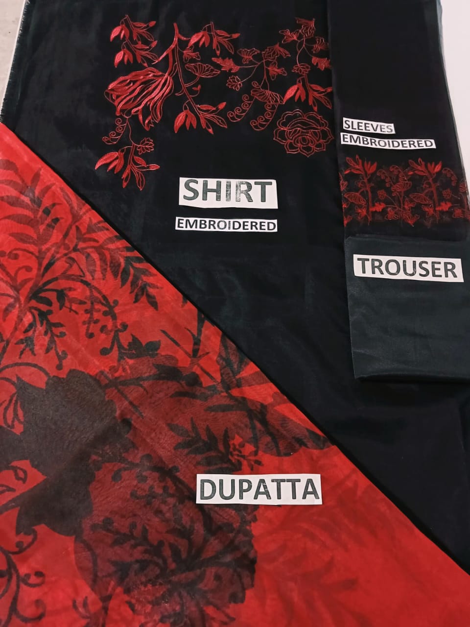 Grace S547-Embroidered 3pc Organza dress with Printed Organza duppata.