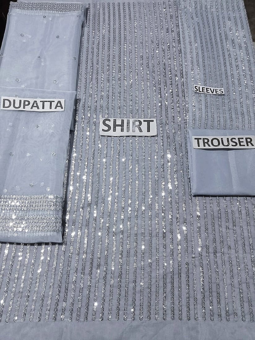 - Unstitched 3pc (7.35 meter) organza dress