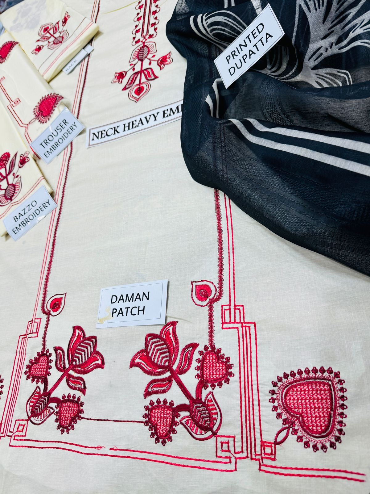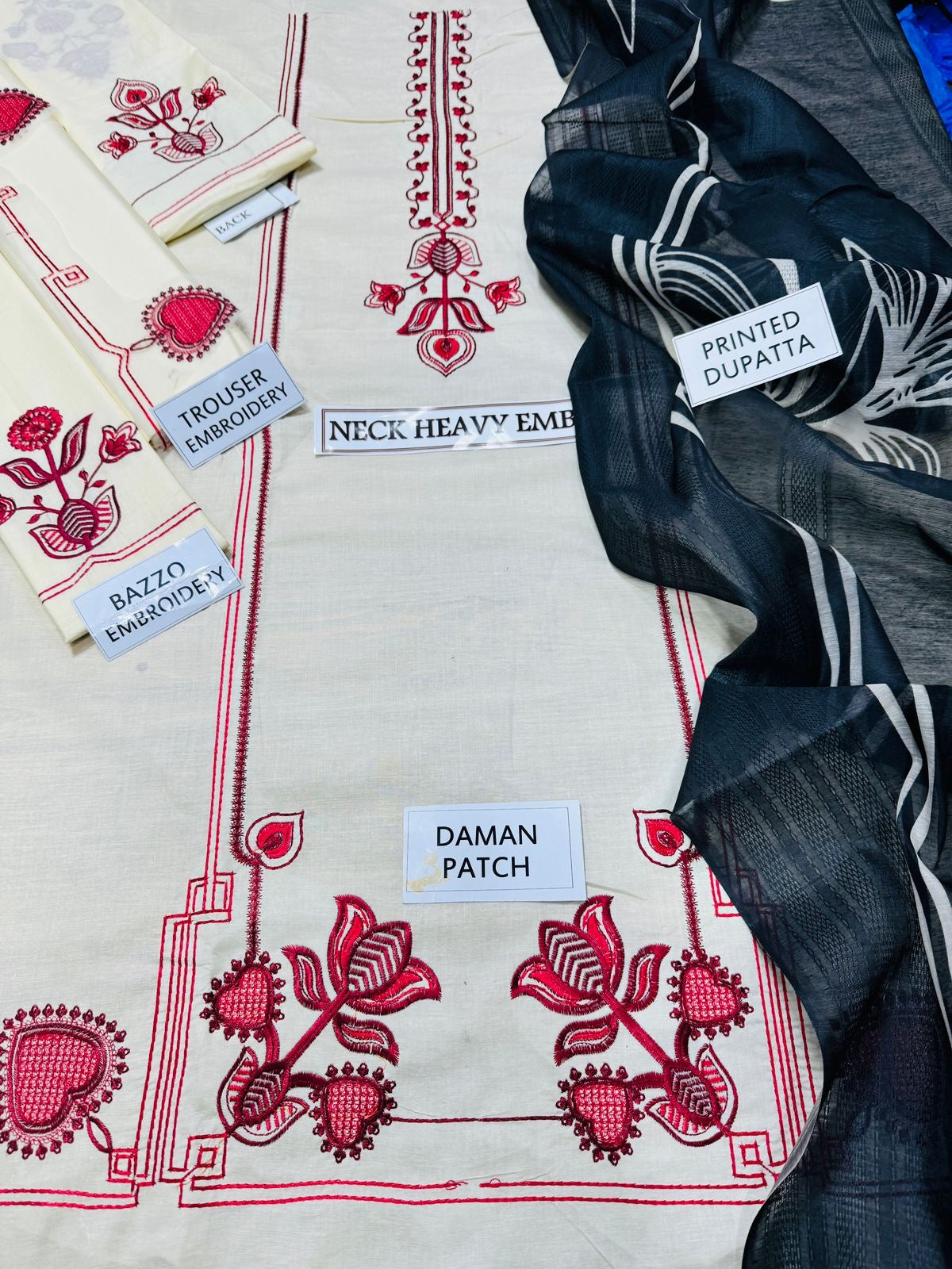 Grace S565-Embroidered 3pc Lawn dress with Printed Cotton Net dupatta.