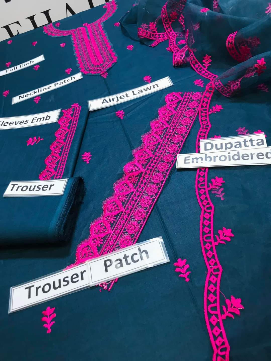 - Embroidered patch for neckline & trouser