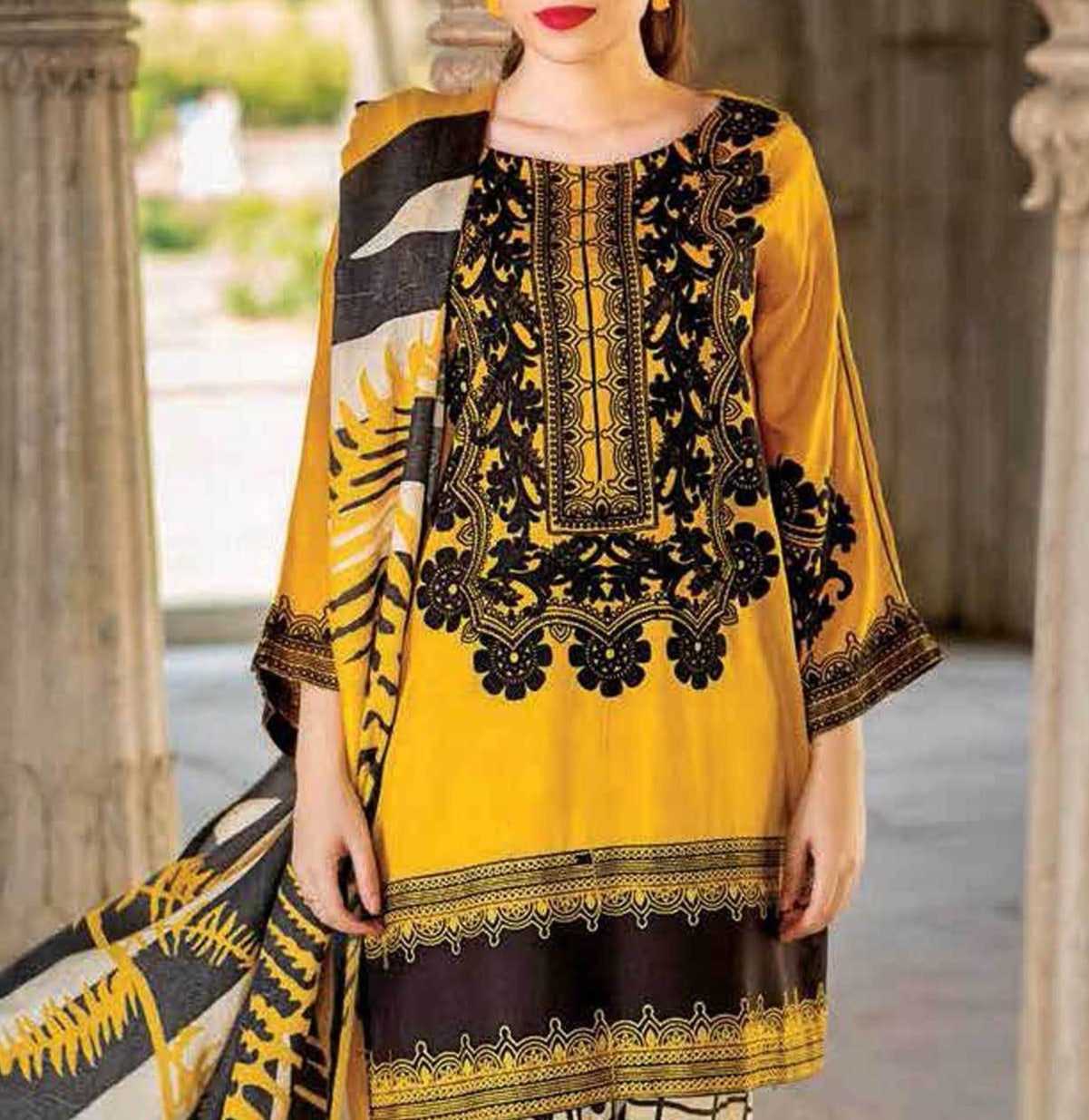 Grace S595-Embroidered 3pc Lawn dress with Printed Chiffon dupatta.