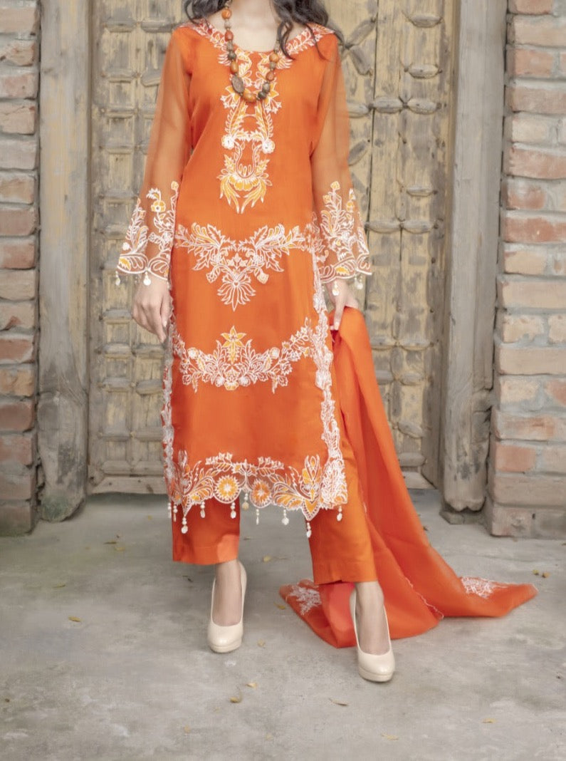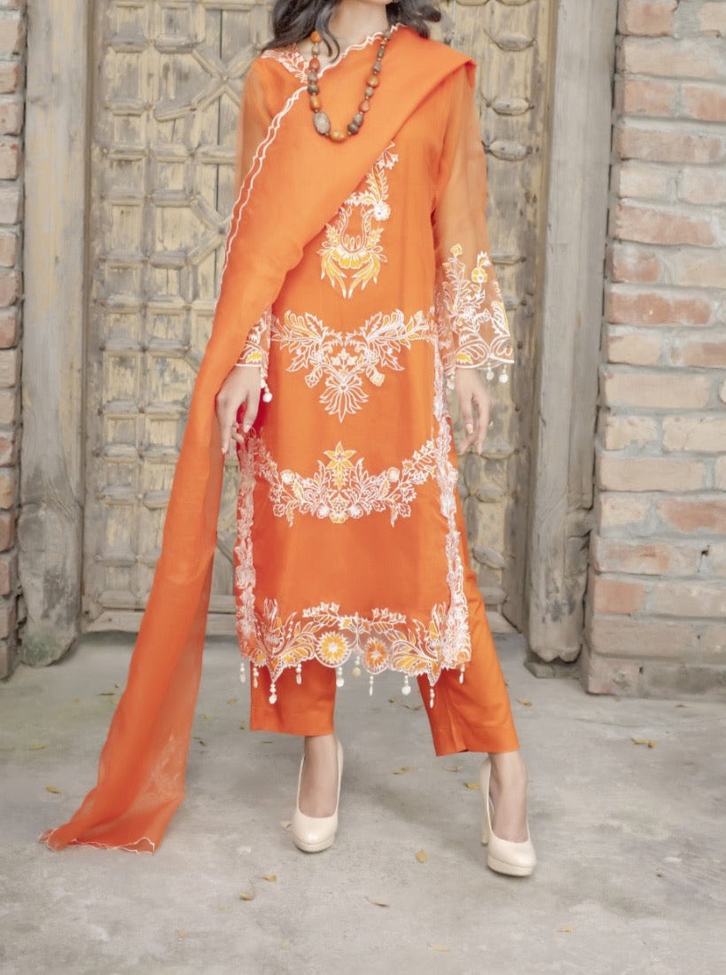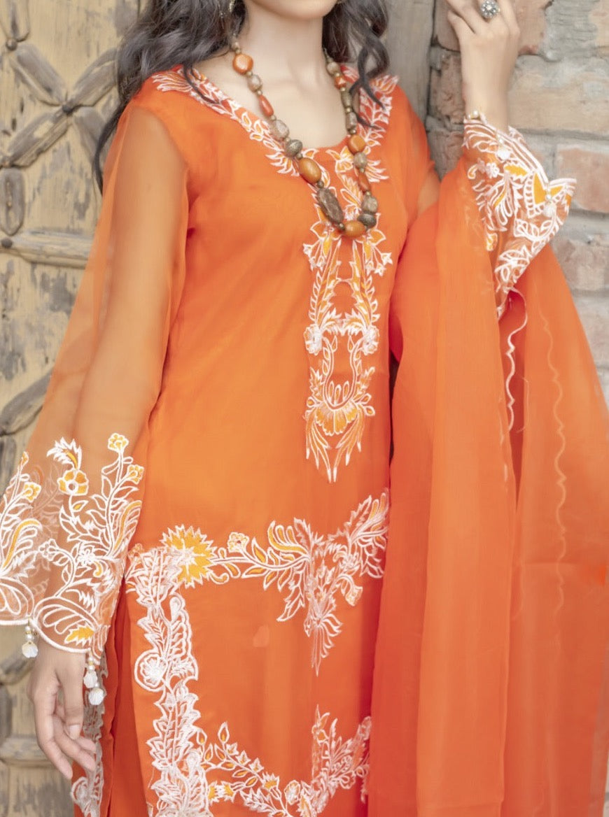 Grace S616-Embroidered 3pc Organza dress With Embroidered Organza dupatta.