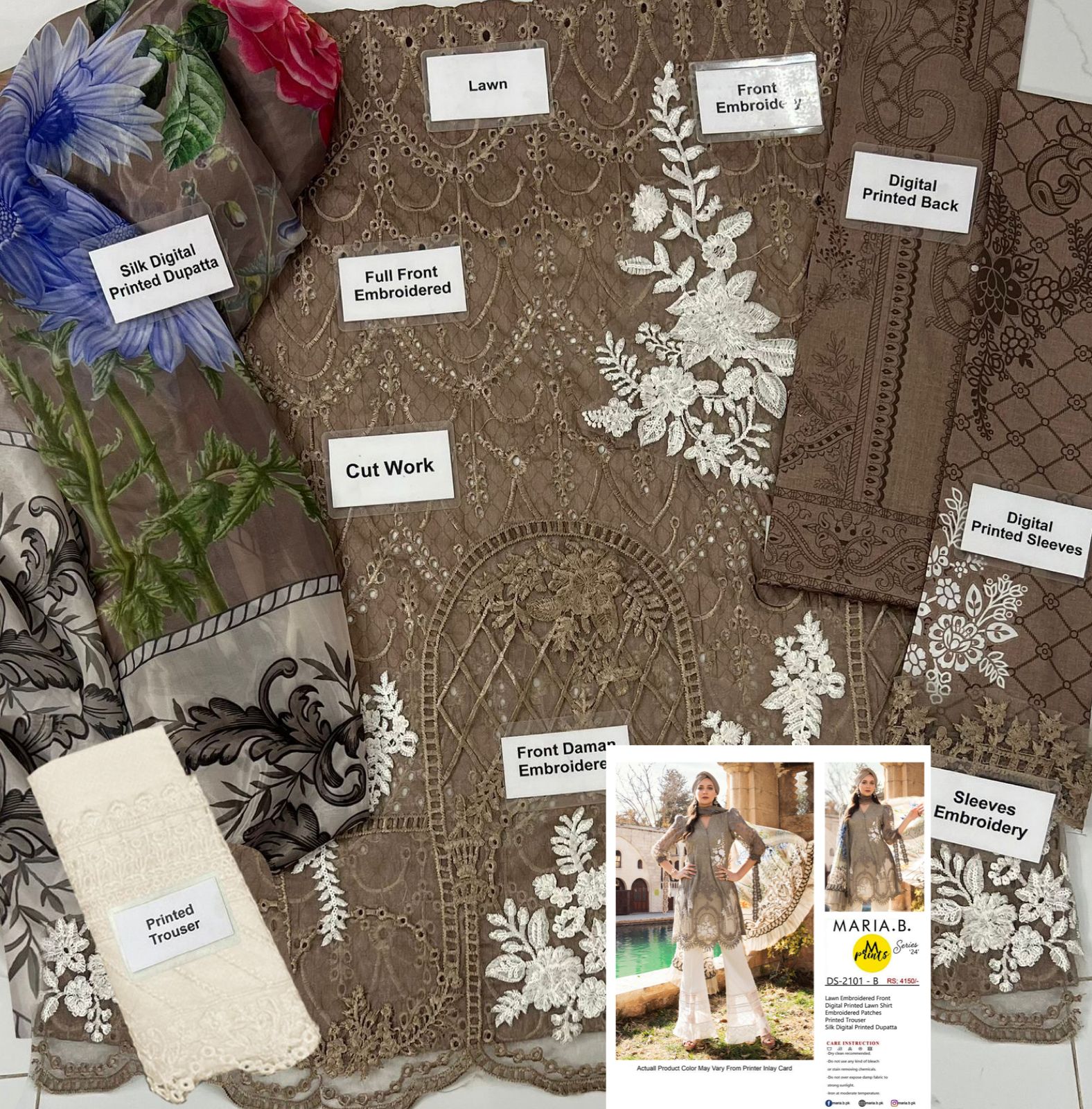 Grace S654-Embroidered 3pcChickan lawn dress with digital printed silk dupatta