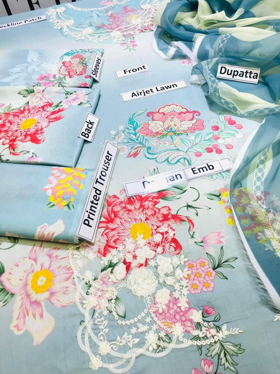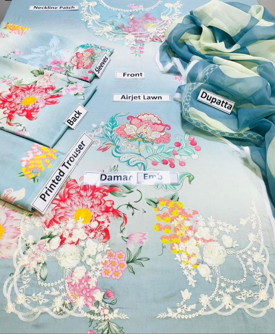 Grace S683-Embroidered 3PC Lawn dress with printed chiffon dupatta.