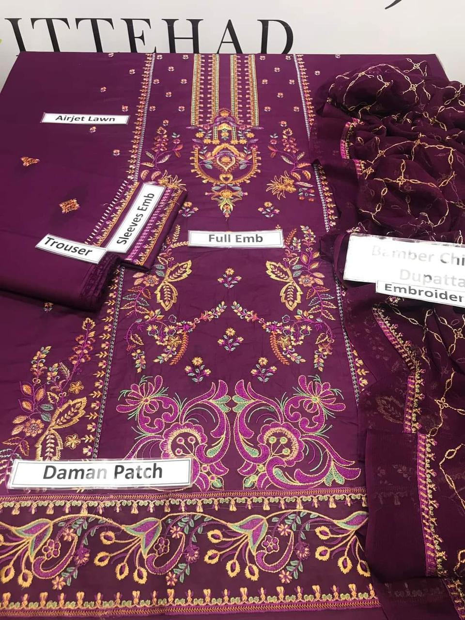 Grace S701-Embroidered 3pc lawn dress with Embroidered chiffon dupatta.