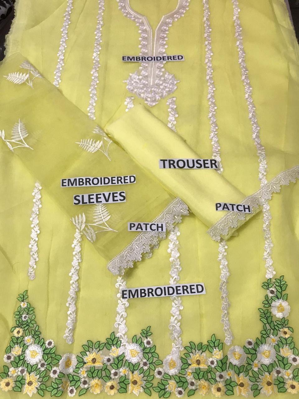Grace S804-Embroidered 3pc organza dress with Embroidered organza duppata.