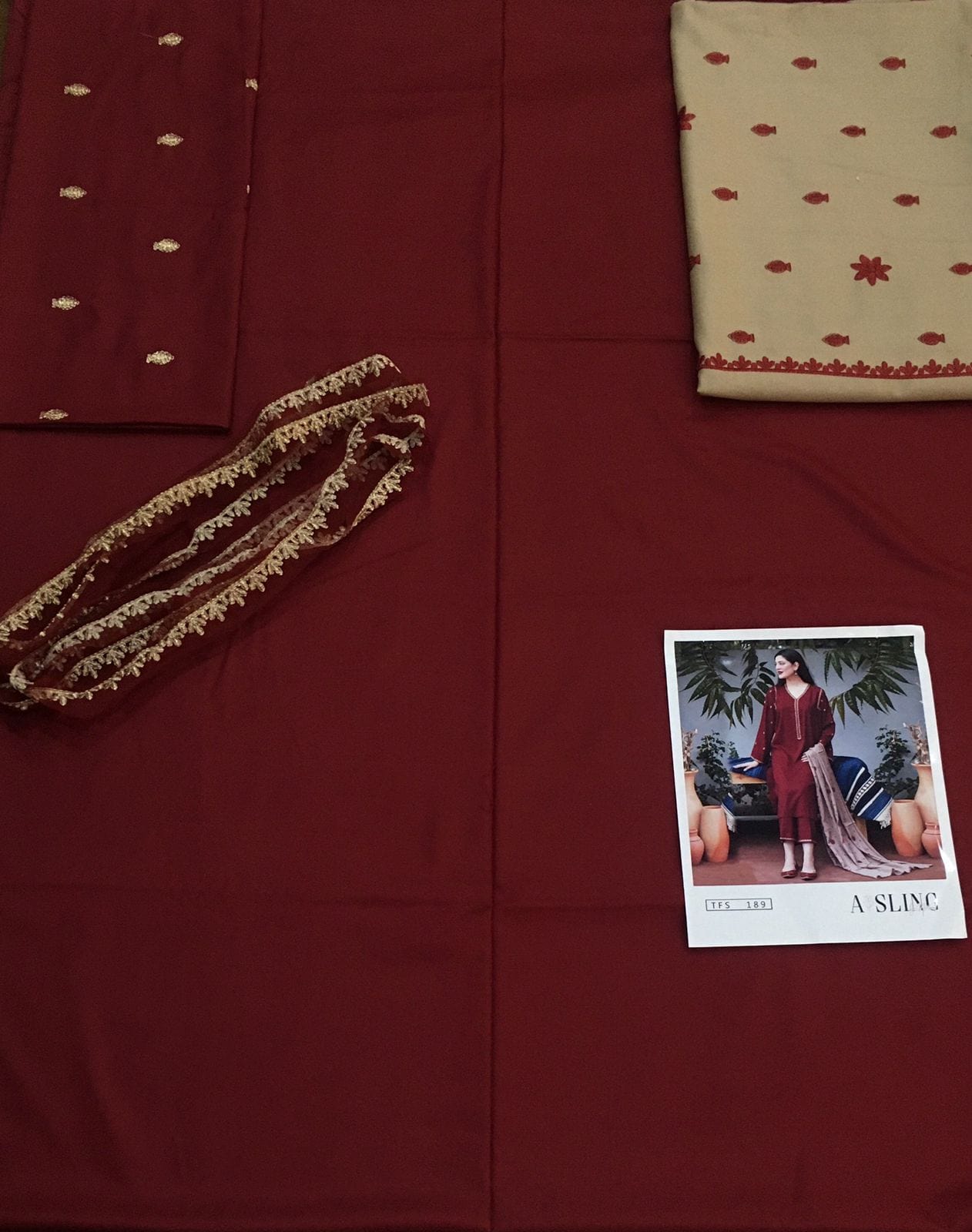 Grace W105 -Embroidered 3pc marina dress with embroidered marina dupatta