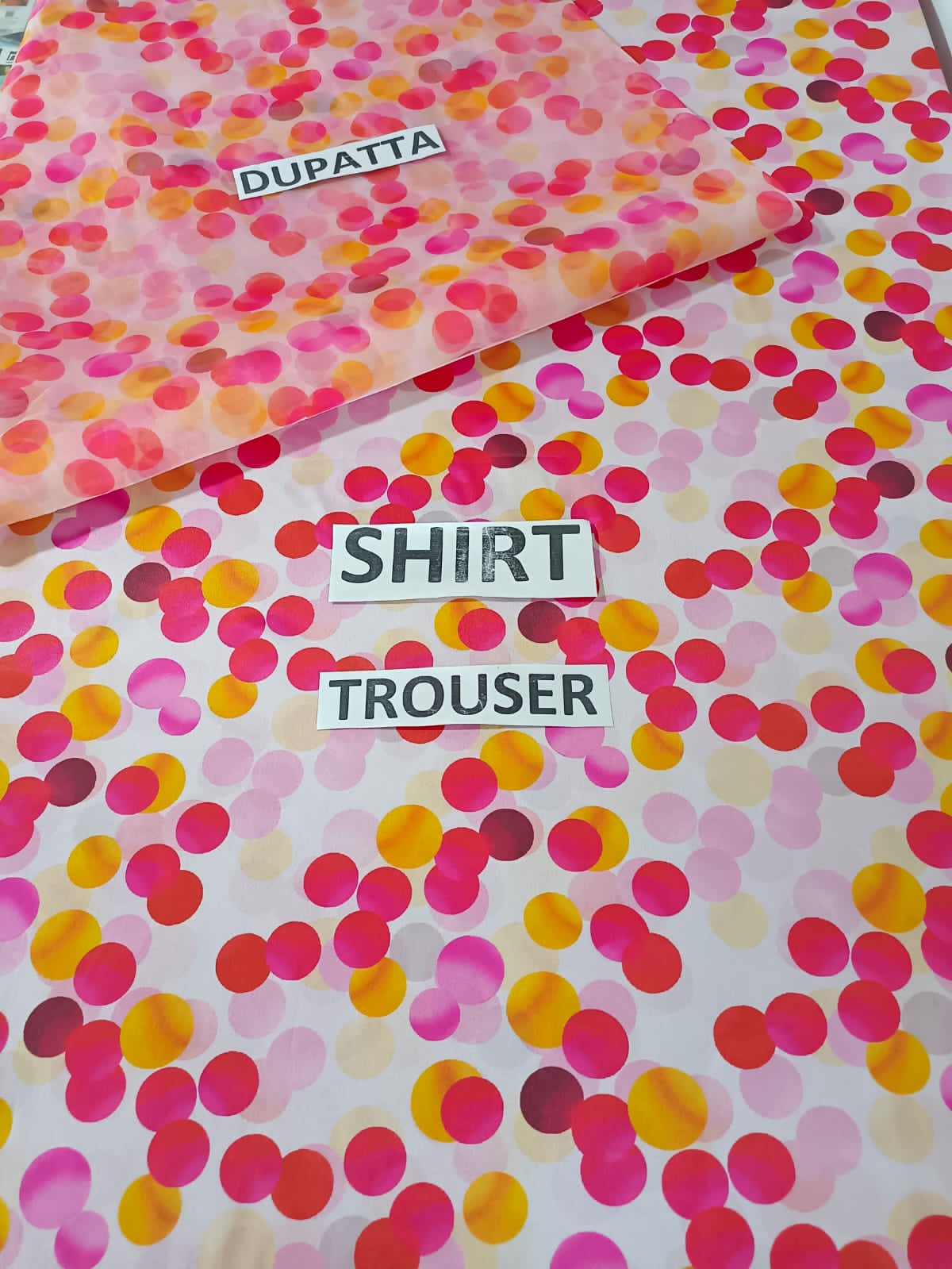 - Unstitched 3pc (Size 7.25-meter dress) .