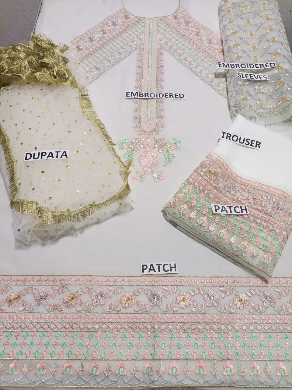 Grace W303-Embroidered 3pc organza dress with Net duppata.