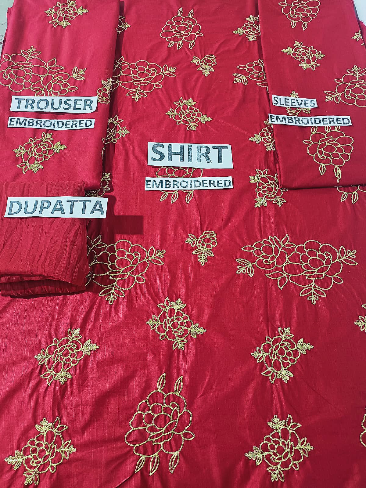 Grace W322-Embroidered 3pc khaddar dress With plain dyed chiffon dupatta