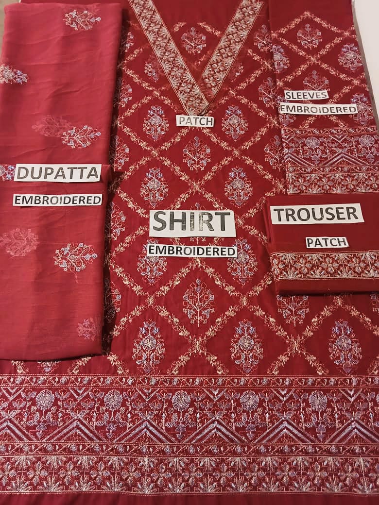 Grace W333-Embroidered 3pc khaddar dress With Embroidered chiffon dupatta.