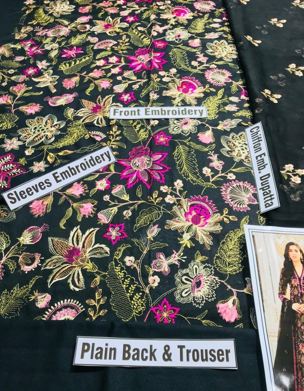 Grace W362- Embroidered 3pc linen dress with embroidered chiffon dupatta.