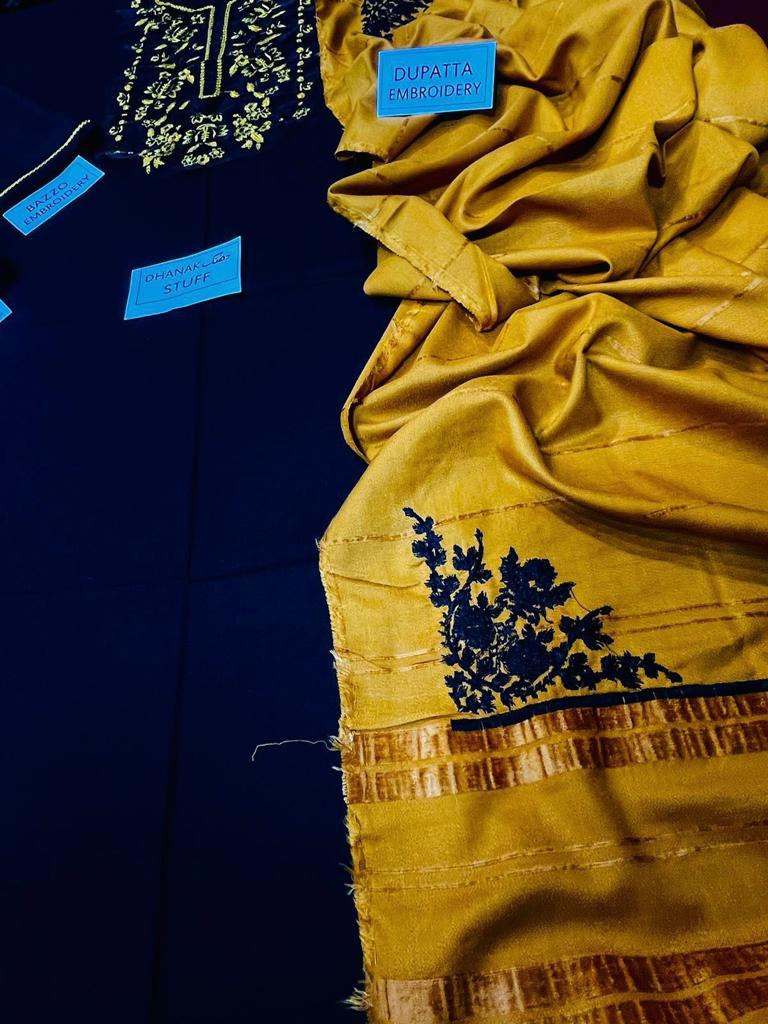 Grace W395- Embroidered 3pc marina dress with Embroidered wool shawl.