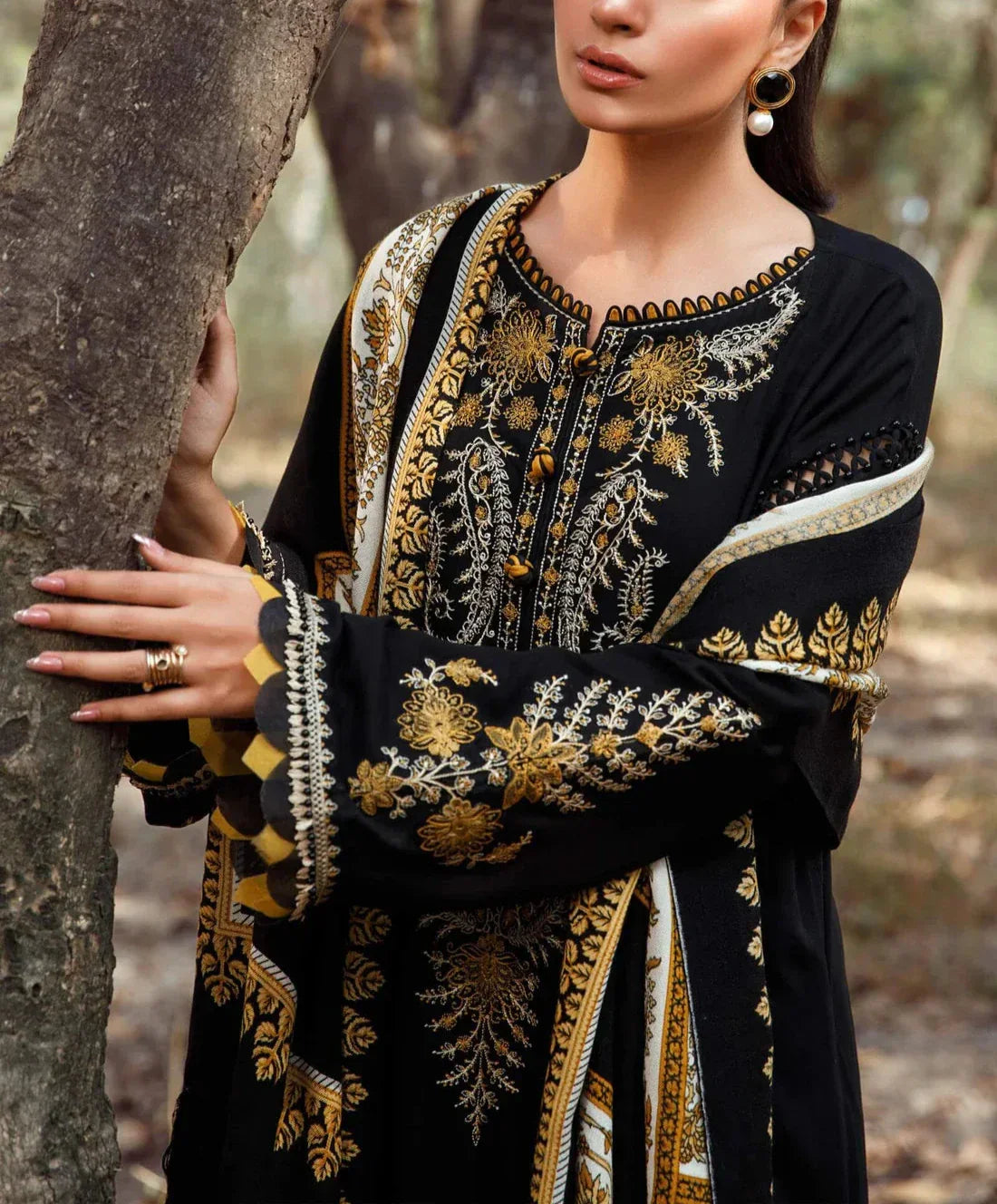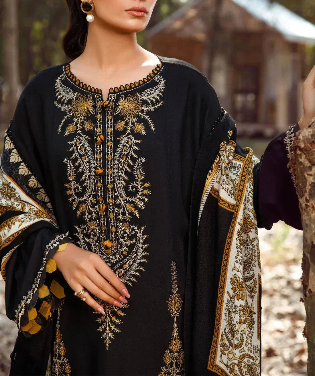 Grace W492-Embroidered 3pc marina dress with Printed shawl.