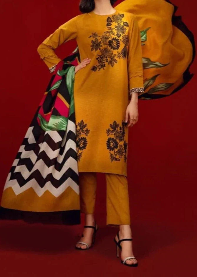Grace W496-Embroidered 3pc khaddar dress With Printed munaar Dupatta.