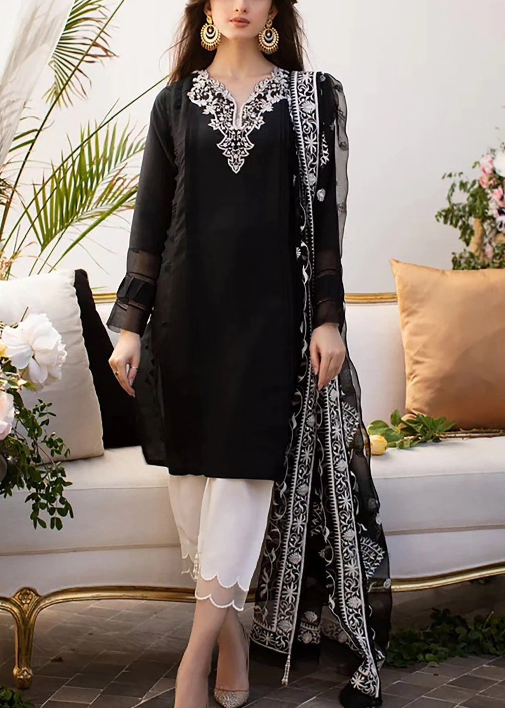 Grace W508-Embroidered 3pc marina dress with Embroidered Organza Dupatta.