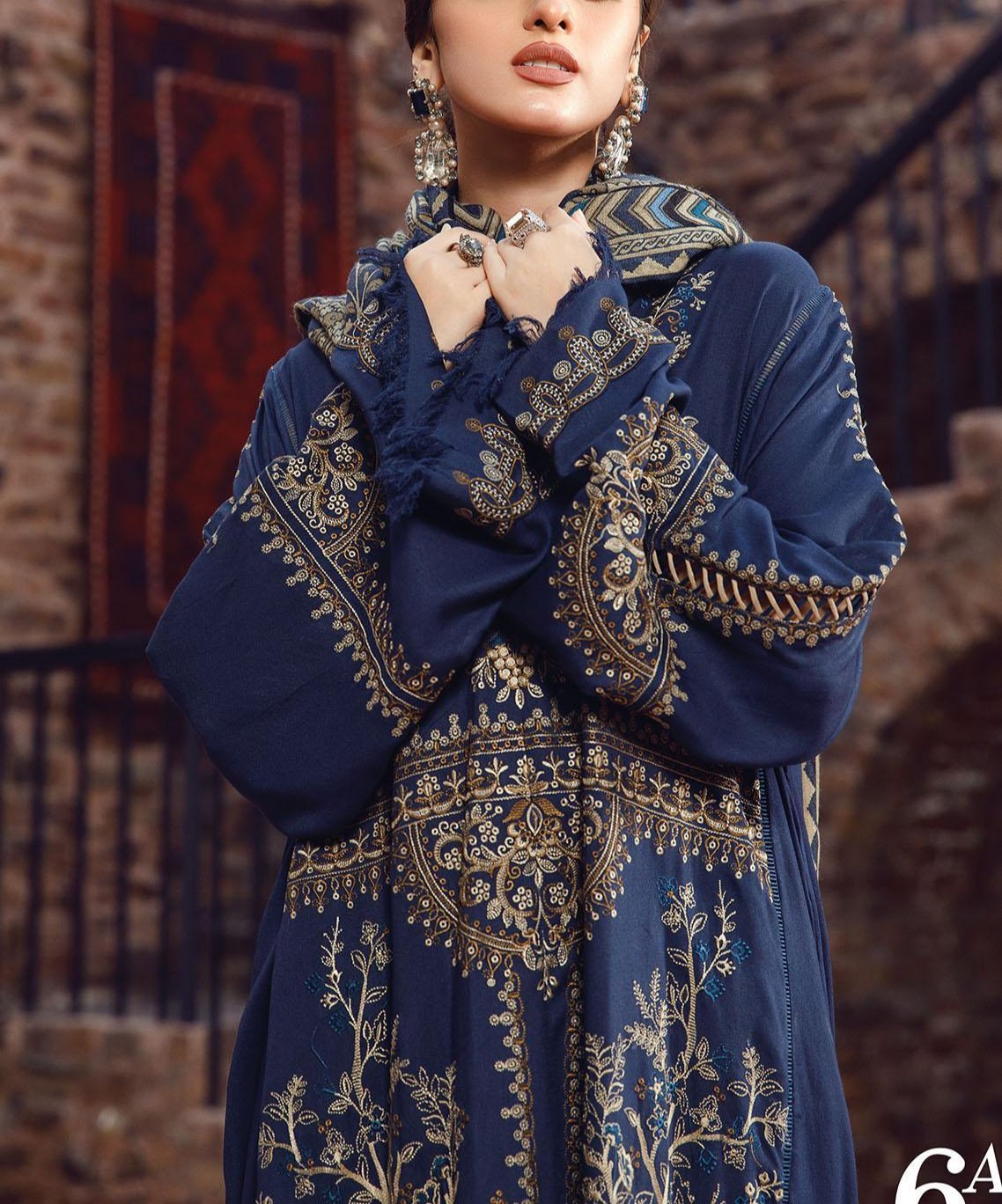 Grace W555-Embroidered 3pc marina dress with Printed shawl.