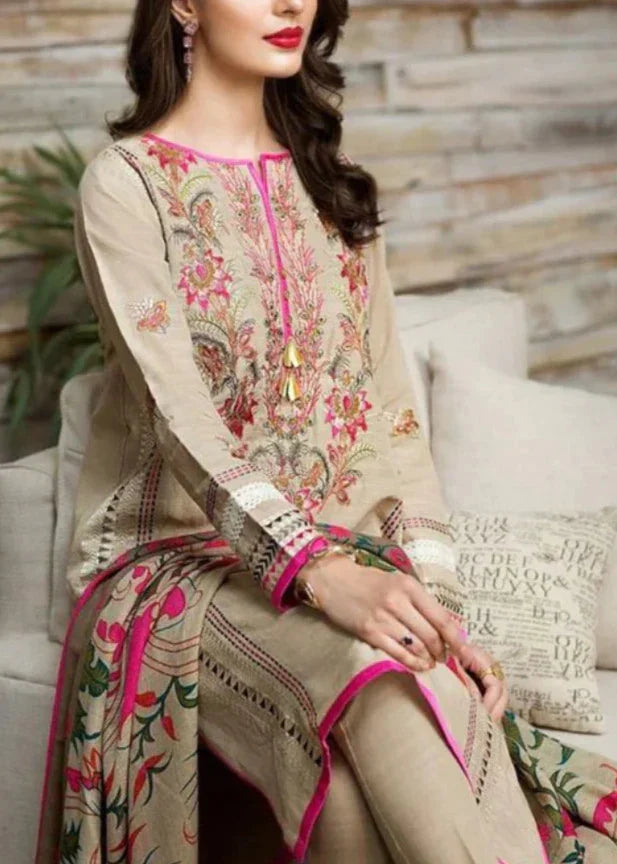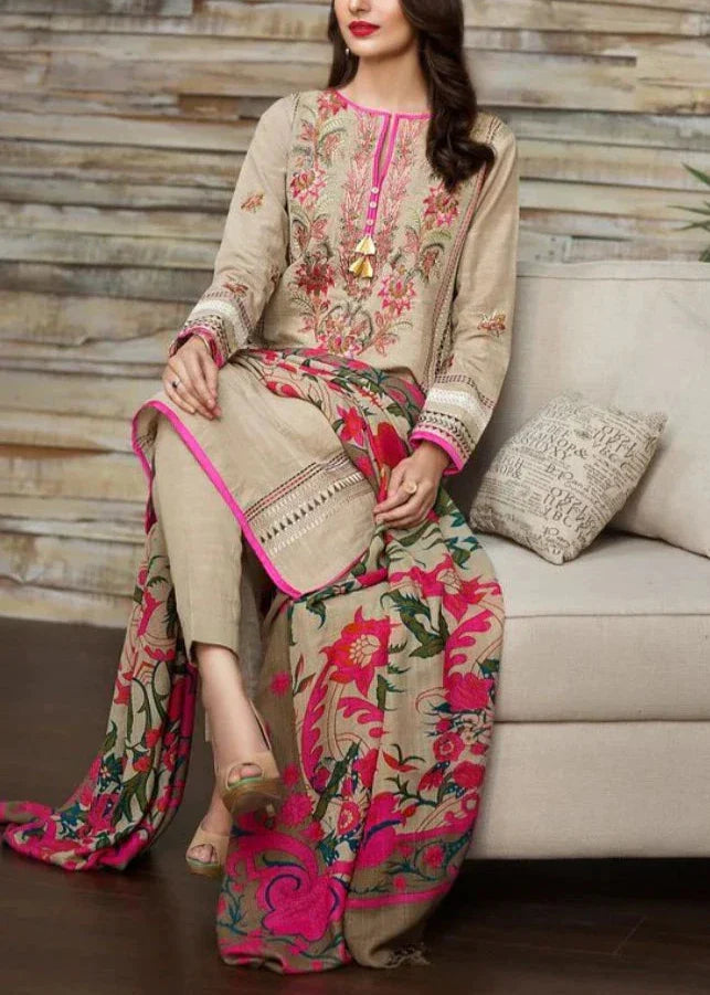 Grace W557-Embroidered 3pc khaddar dress With Printed shawl.