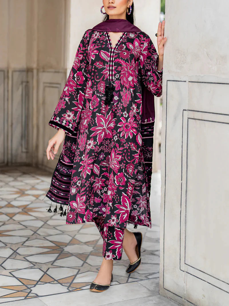 Grace W581-Printed 3pc karandi Dress With Printed karandi Shawl.