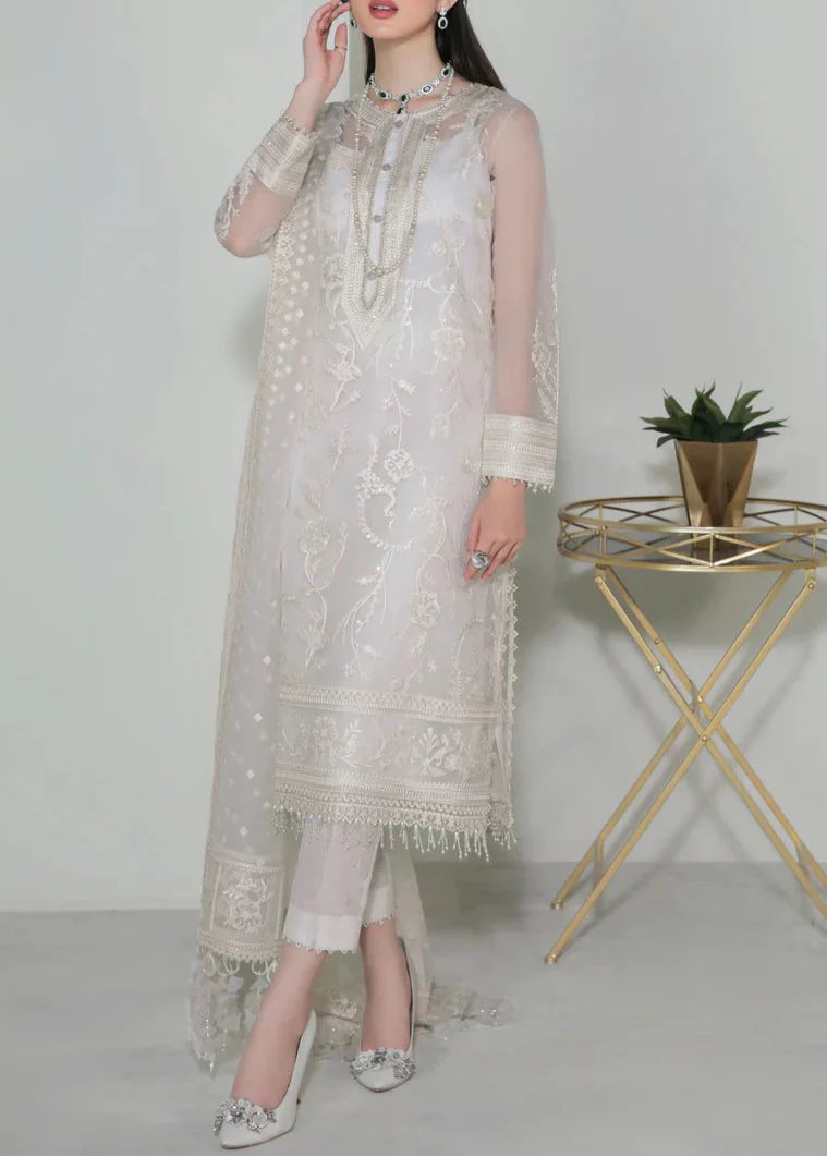 Grace W596-Embroidered 3pc Organza Dress with Embroidered Organza Duppata.