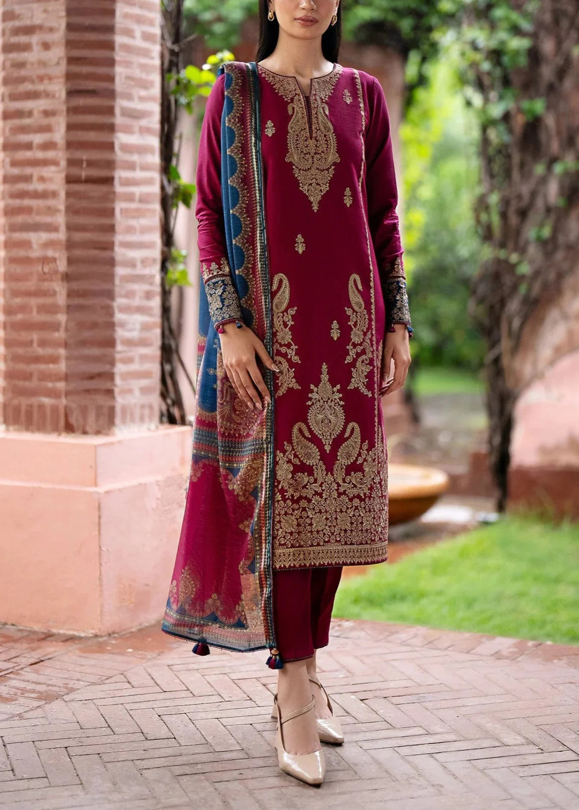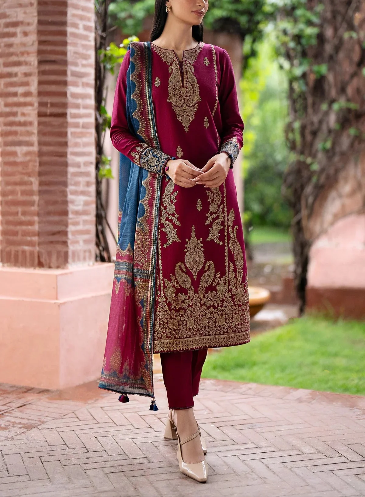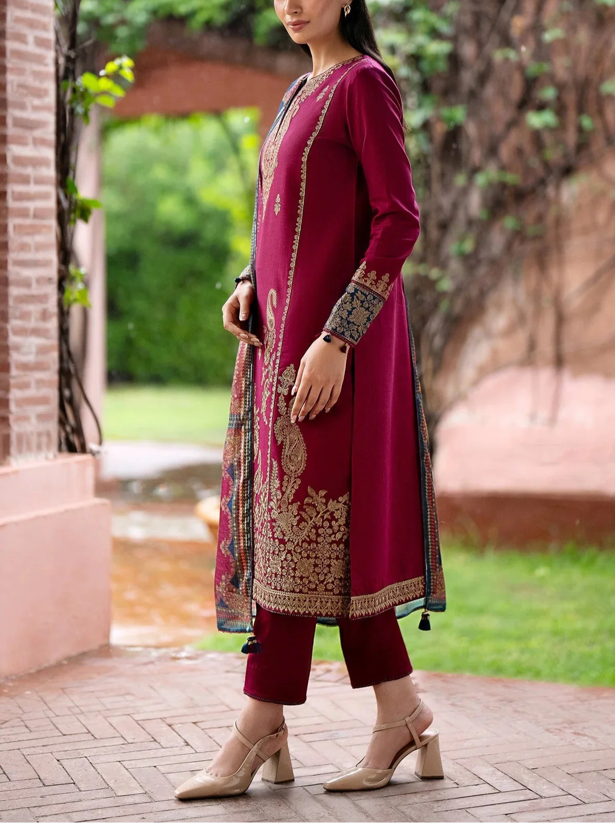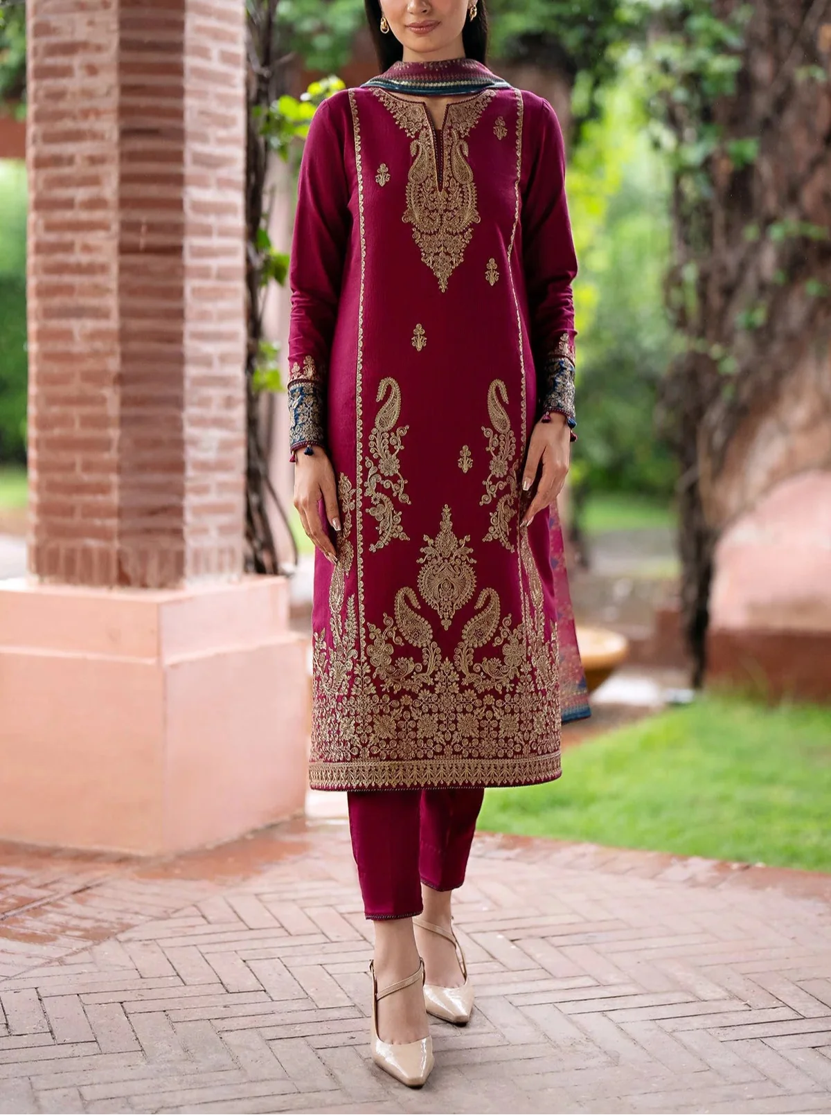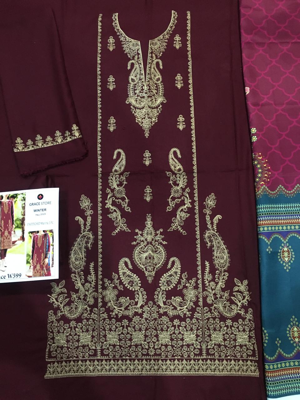 Grace W599-Embroidered 3pc Marina Dress With Printed Shawl.