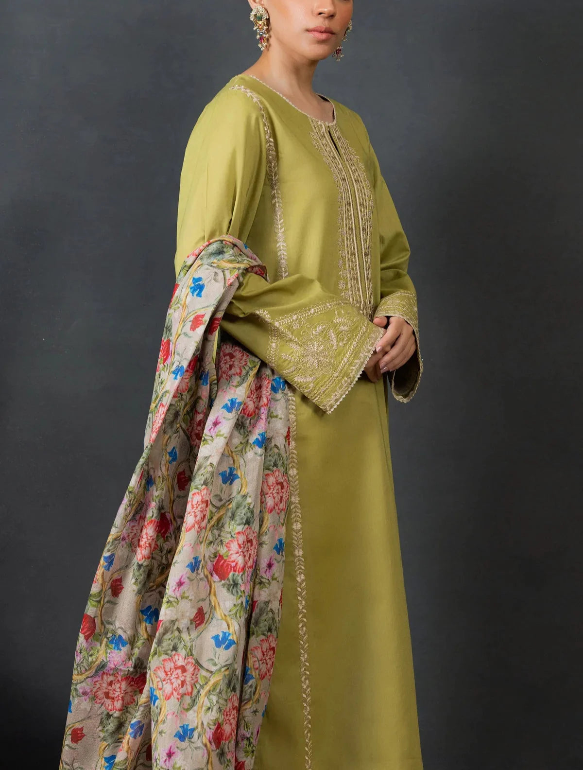 Grace W606-Embroidered 3pc Marina Dress With Printed Shawl.