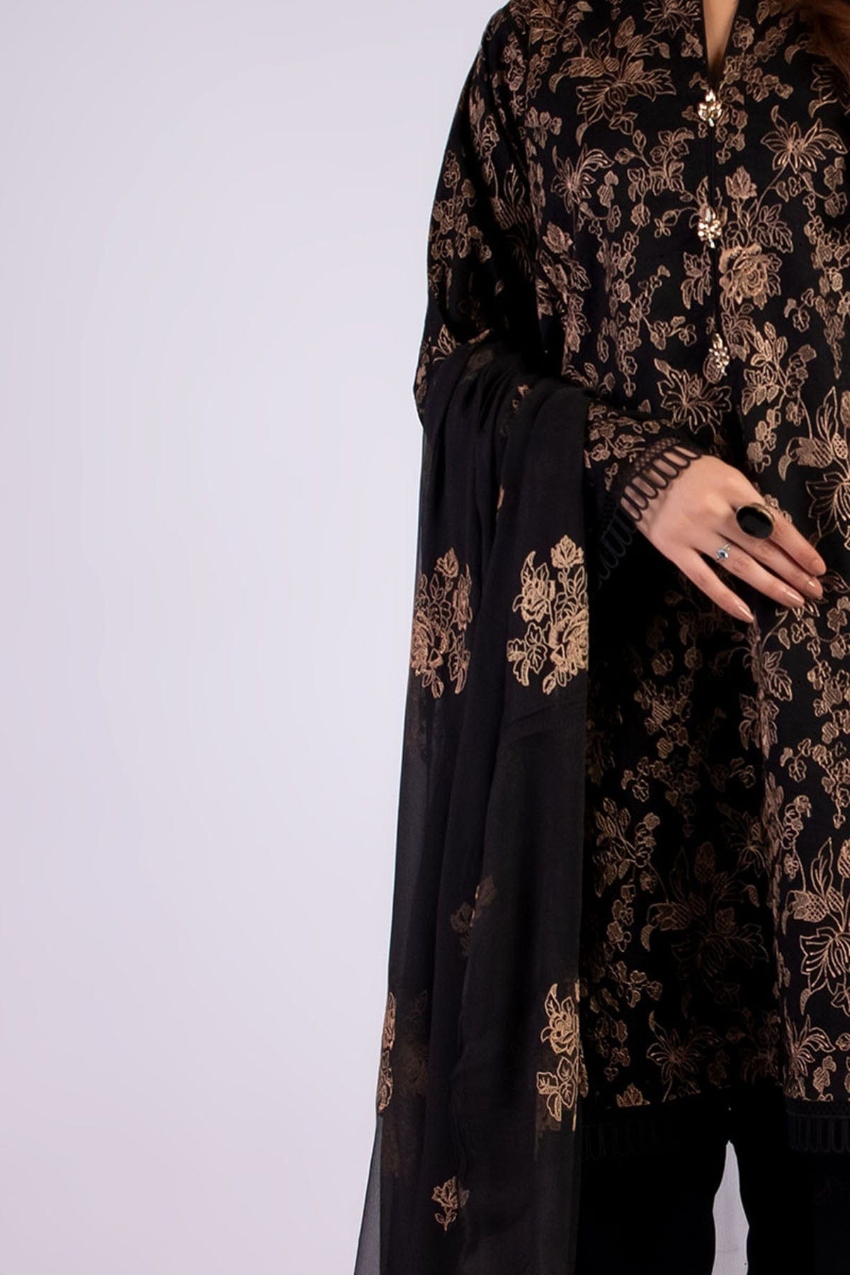 Grace W97 - Embroidered 3pc linen dress with embroidered chiffon dupatta.