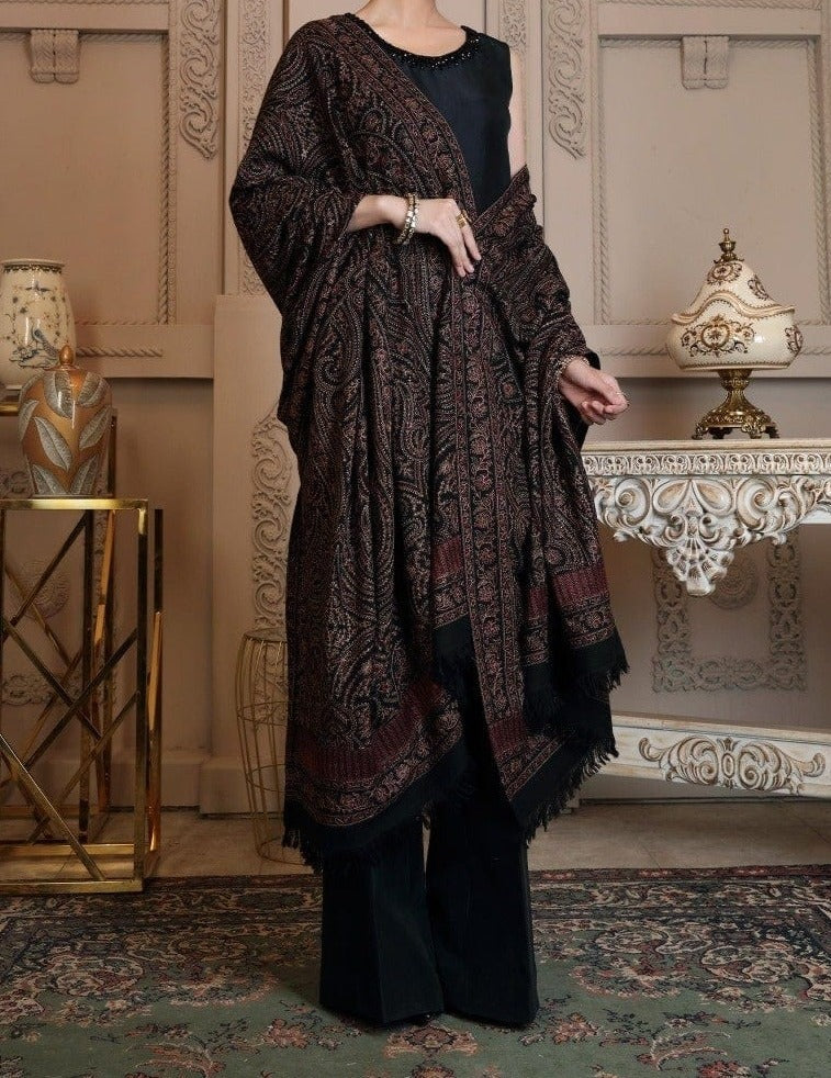 Sarinnah Premium D54-Luxury Formal Heavy Embroidered Karandi Shawl.
