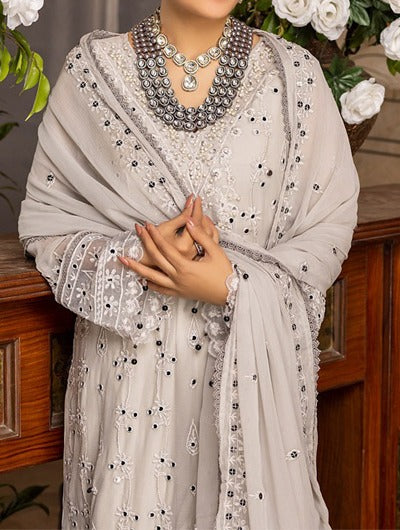 Stitched Cloud Gray – Embroidered Chiffon Stitched 3Pc Suit